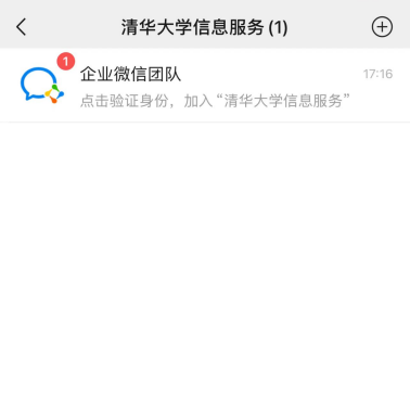 2. 点击“企业微信团队”中的“点击验证身份”消息